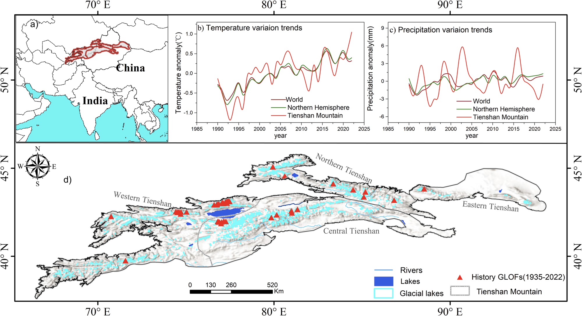 图1. 天山地区冰碛湖溃决洪水风险与灾害水平